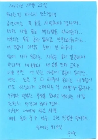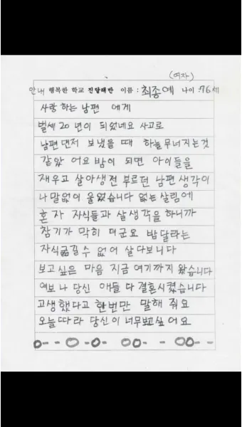 사랑하는 마음은 남편에게쓰는 말의 온도를 정합니다. 감동의 순간은 편지에 기록되죠.