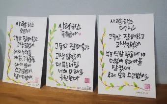 “사랑합니다.” 다음 줄에 “좋아해요.”, 그다음 줄에 “그치만 가끔 투덜거릴 수도 있지요.” 이런 리듬이 살아있어야 합니다.