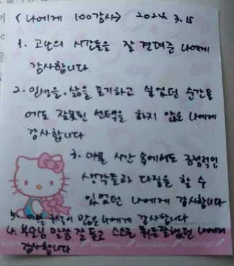 “하루에 몇 번이나 고마운 마음이 올라와요. 그래서 이렇게 적어요.”